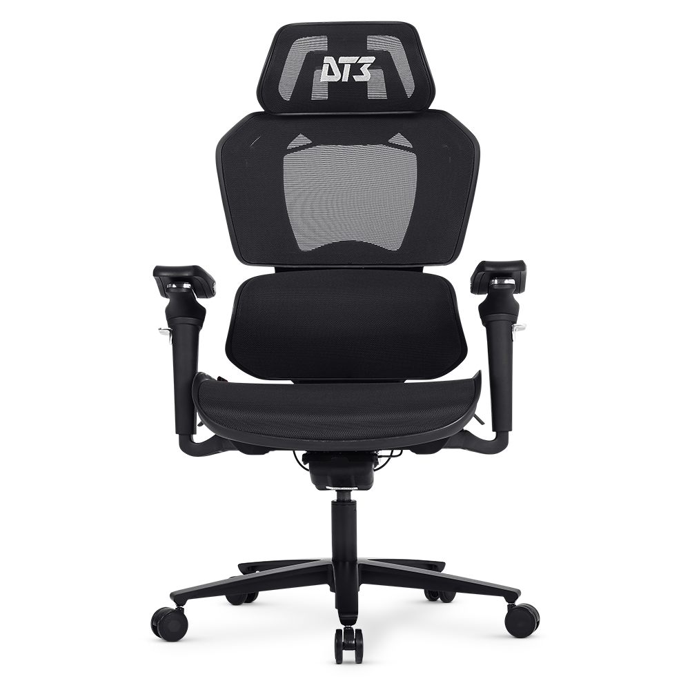 Apoio de cabeça com ajuste de altura e rotação, com revestimento em Mesh Vintex-C™ com logo DT3 bordado.
